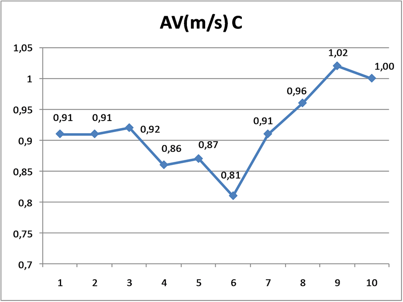 Även förmågan att våga ha höga hastigheter i den excentriska fasen är mycket viktigt. Här kan man se en bra ökning av effektutvecklingen. Detta kan bero på att Per numera kör all enbens träning i maximala hastigheter och som det verkar påverkar även detta den excentriksa fasen vid testen på två ben.